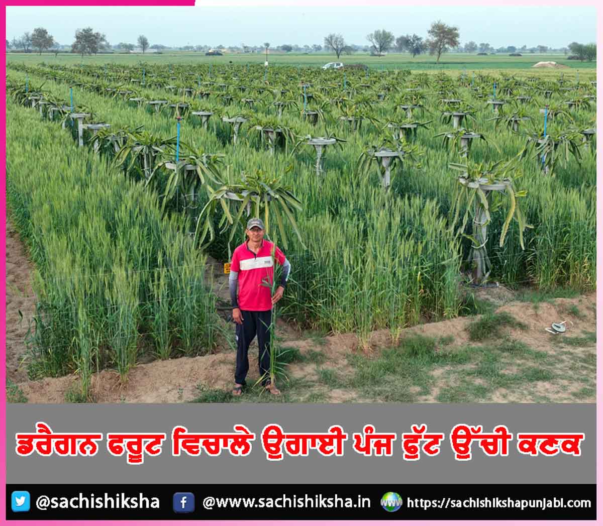Dragon Fruit: ਡਰੈਗਨ ਫਰੂਟ ਵਿਚਾਲੇ ਉਗਾਈ ਪੰਜ ਫੁੱਟ ਉੱਚੀ ਕਣਕ