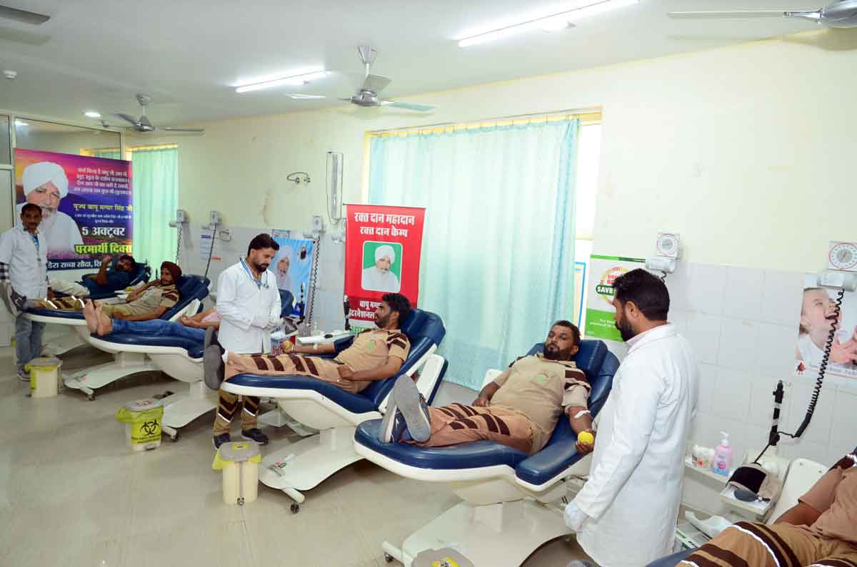 ਪਵਿੱਤਰ ਯਾਦ ’ਤੇ 5 ਅਕਤੂਬਰ ਨੂੰ ਸ਼ਾਹ ਸਤਿਨਾਮ ਜੀ ਸਪੈਸ਼ਲਿਟੀ ਹਸਪਤਾਲ ਸਰਸਾ ਸਥਿਤ ਪੂਜਨੀਕ ਬਾਪੂ ਮੱਘਰ ਸਿੰਘ ਜੀ ਇੰਟਰਨੈਸ਼ਨਲ ਬਲੱਡ ਸੈਂਟਰ ’ਚ ਖੂਨਦਾਨ ਕੈਂਪ ਲਗਾਇਆ ਗਿਆ ਇਸ ਕੈਂਪ ਦਾ ਸ਼ੁੱਭ ਆਰੰਭ ਡੇਰਾ ਸੱਚਾ ਸੌਦਾ ਦੀ ਮੈਨੇਜਮੈਂਟ ਕਮੇਟੀ, ਹਸਪਤਾਲ ਅਤੇ ਬਲੱਡ ਸੈਂਟਰ ਦੇ ਡਾਕਟਰਾਂ ਅਤੇ ਸੇਵਾਦਾਰਾਂ ਵੱਲੋਂ ਅਰਦਾਸ ਦਾ ਭਜਨ ਬੋਲ ਕੇ ਕੀਤਾ ਗਿਆ