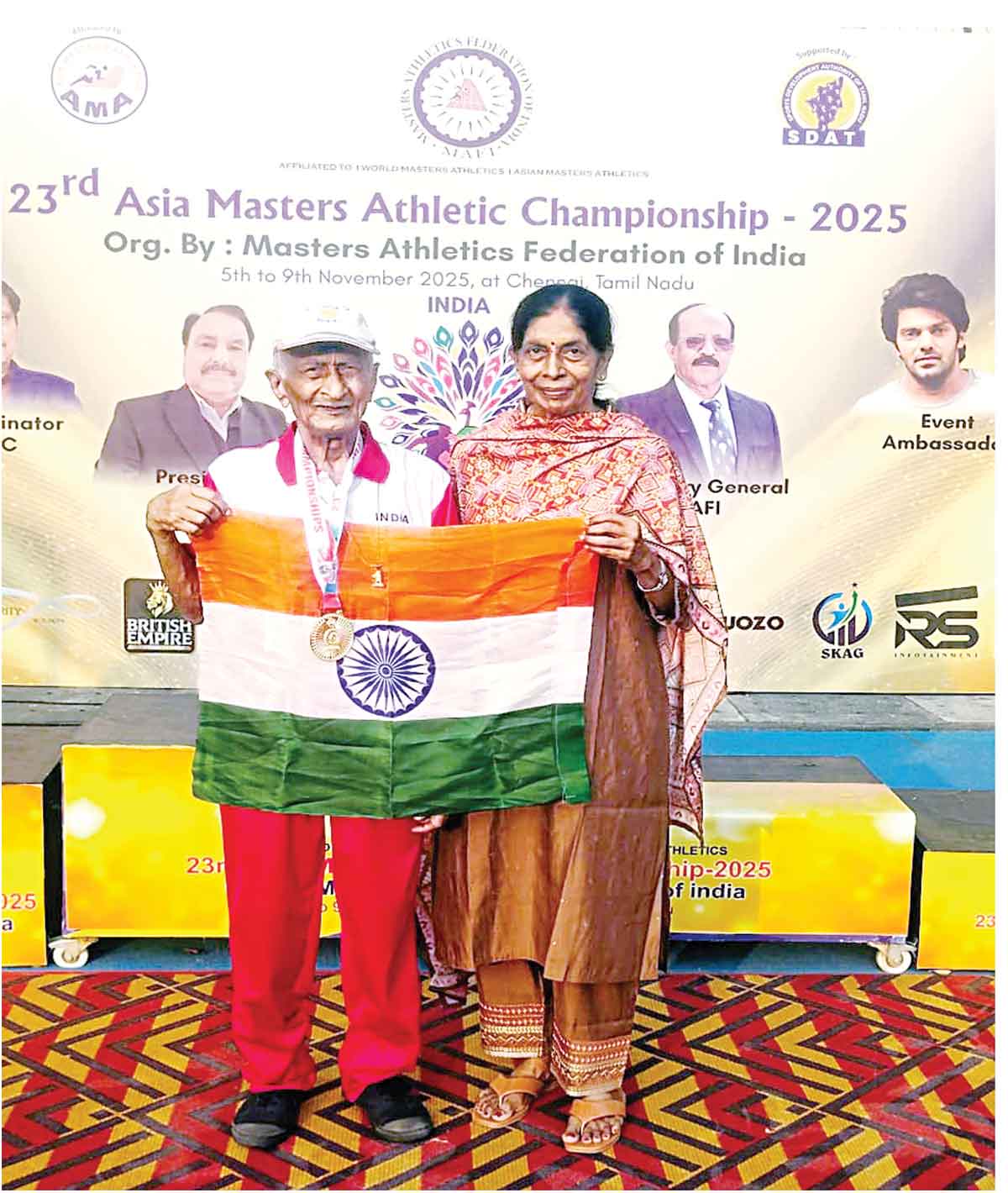 ਜਵਾਹਰ ਲਾਲ ਨਹਿਰੂ ਸਟੇਡੀਅਮ ’ਚ ਖੇਡੀ ਗਈ 23ਵੀਂ ਏਸ਼ੀਆ ਮਾਸਟਰਜ਼ ਐਥਲੈਟਿਕਸ ਚੈਂਪੀਅਨਸ਼ਿਪ ’ਚ ਵਡੇਰੀ ਉਮਰ ਦੇ ਐਥਲੀਟ ਅਤੇ ਸਾਬਕਾ ਪ੍ਰਿੰਸੀਪਲ 94 ਸਾਲਾਂ ਦੇ ਇਲਮ ਚੰਦ ਇੰਸਾਂ ਨੇ ਸ਼ਾਨਦਾਰ ਪ੍ਰਦਰਸ਼ਨ ਕਰਦਿਆਂ ਦੇਸ਼ ਦਾ ਮਾਣ ਵਧਾਇਆ 85 ਪਲੱਸ ਵਰਗ ’ਚ ਮੁਕਾਬਲਾ ਕਰ ਰਹੇ ਇਲਮ ਚੰਦ ਇੰਸਾਂ ਨੇ ਤਿੰਨ ਮੁਕਾਬਲਿਆਂ ’ਚ ਤਗਮੇ ਆਪਣੇ ਨਾਂਅ ਕੀਤੇ 5 ਨਵੰਬਰ ਨੂੰ ਹੋਏ ਟਰਿੱਪਲ ਜੰਪ ਈਵੈਂਟ ’ਚ ਉਨ੍ਹਾਂ ਨੇ ਕਾਂਸੀ ਤਗਮਾ (ਬ੍ਰਾਂਜ ਮੈਡਲ) ਹਾਸਲ ਕੀਤਾ ਇਸ ਤੋਂ ਅਗਲੇ ਦਿਨ, 6 ਨਵੰਬਰ ਨੂੰ ਉੱਚੀ ਛਾਲ (ਹਾਈ ਜੰਪ) ’ਚ ਆਪਣੀ ਉੱਚ ਪ੍ਰਤਿਭਾ ਦਾ ਪ੍ਰਦਰਸ਼ਨ ਕਰਦੇ ਹੋਏ ਚਾਂਦੀ ਤਗਮਾ (ਸਿਲਵਰ ਮੈਡਲ) ਜਿੱਤਿਆ ਇਸਦੇ ਨਾਲ ਹੀ ਸਭ ਤੋਂ ਜ਼ਿਕਰਯੋਗ ਪ੍ਰਾਪਤੀ 7 ਨਵੰਬਰ ਨੂੰ ਰਹੀ ਜਦੋਂ ਉਨ੍ਹਾਂ ਨੇ ਪੋਲ ਵਾਲਟ ਜੰਪ ’ਚ ਸ਼ਾਨਦਾਰ ਪ੍ਰਦਰਸ਼ਨ ਕਰਕੇ ਸੋਨ ਤਗਮਾ ਆਪਣੇ ਨਾਂਅ ਕੀਤਾ ਇਸ ਅੰਤਰਰਾਸ਼ਟਰੀ ਚੈਂਪੀਅਨਸ਼ਿਪ ’ਚ ਭਾਰਤ, ਸ੍ਰੀਲੰਕਾ, ਬੰਗਲਾਦੇਸ਼, ਫਿਲੀਪੀਂਸ, ਈਰਾਨ, ਕਜਾਕਿਸਤਾਨ ਸਮੇਤ 21 ਤੋਂ ਵੱਧ ਦੇਸ਼ਾਂ ਦੇ ਖਿਡਾਰੀਆਂ ਨੇ ਹਿੱਸਾ ਲਿਆ