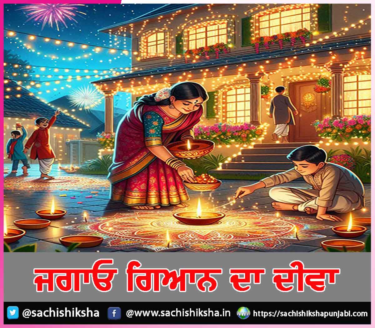 Happy Diwali ਜਗਾਓ ਗਿਆਨ ਦਾ ਦੀਵਾ -ਆਦਮੀ ਮਿੱਟੀ ਦੇ ਦੀਵੇ ’ਚ ਮੋਹ ਦੀ ਵੱਟੀ ਅਤੇ ਪਰਉਪਕਾਰ ਦਾ ਤੇਲ ਪਾ ਕੇ ਉਸ ਨੂੰ ਬਾਲਦੇ ਹੋਏ ਸੱਭਿਆਚਾਰ ਨੂੰ ਮਾਣ ਅਤੇ ਸਨਮਾਨ ਦਿੰਦਾ ਹੈ, ਕਿਉਂਕਿ ਦੀਵਾ ਭਲੇ ਹੀ ਮਿੱਟੀ ਦਾ ਹੋਵੇ ਪਰ ਉਹ ਸਾਡੇ ਜਿਉਣ ਦਾ ਆਦਰਸ਼ ਹੈ, ਸਾਡੇ ਜੀਵਨ ਦੀ ਦਿਸ਼ਾ ਹੈ, ਸੰਸਕਾਰਾਂ ਦੀ ਸਿੱਖਿਆ ਹੈ, ਸੰਕਲਪ ਦੀ ਪ੍ਰੇਰਨਾ ਹੈ ਅਤੇ ਟੀਚੇ ਤੱਕ ਪਹੁੰਚਣ ਦਾ ਜ਼ਰੀਆ ਹੈ ਦੀਵਾਲੀ ਮਨਾਉਣ ਦੀ ਸਾਰਥਿਕਤਾ ਉਦੋਂ ਹੈ, ਜਦੋਂ ਅੰਦਰ ਦਾ ਹਨੇ੍ਹਰਾ ਦੂਰ ਹੋਵੇ ਸਾਡੇ ਅੰਦਰ ਅਗਿਆਨ ਦਾ ਹਨੇ੍ਹਰਾ ਛਾਇਆ ਹੋਇਆ ਹੈ ਉਹ ਗਿਆਨ ਦੀ ਰੌਸ਼ਨੀ ਨਾਲ ਹੀ ਮਿਟ ਸਕਦਾ ਹੈ
