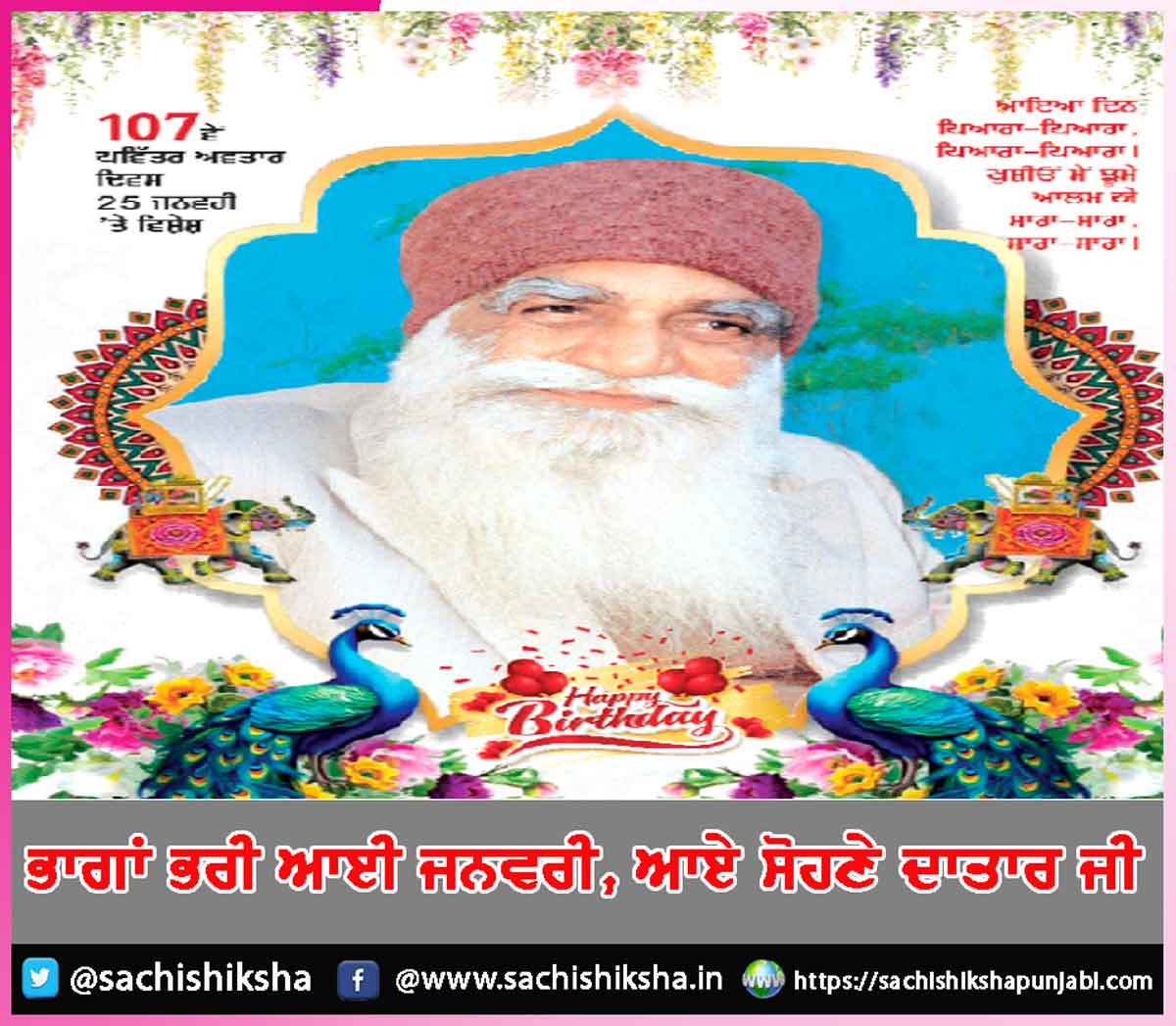 ਸਾਰੀ ਸਾਧ-ਸੰਗਤ ਨੂੰ ਪਵਿੱਤਰ ਅਵਤਾਰ ਦਿਵਸ ਦੀ ਕੋਟਿ-ਕੋਟਿ ਵਧਾਈ ਹੋਵੇ ਜੀ