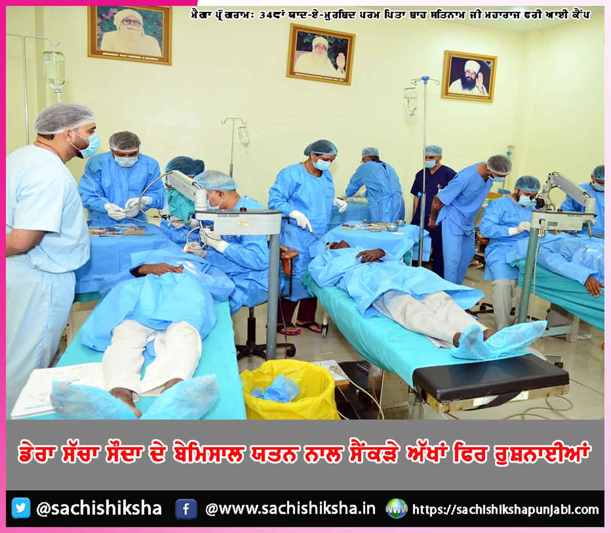 ਮੈਗਾ ਪ੍ਰੋਗਰਾਮ: 34ਵਾਂ ਯਾਦ-ਏ-ਮੁਰਸ਼ਿਦ ਪਰਮ ਪਿਤਾ ਸ਼ਾਹ ਸਤਿਨਾਮ ਜੀ ਮਹਾਰਾਜ ਫਰੀ ਆਈ ਕੈਂਪ