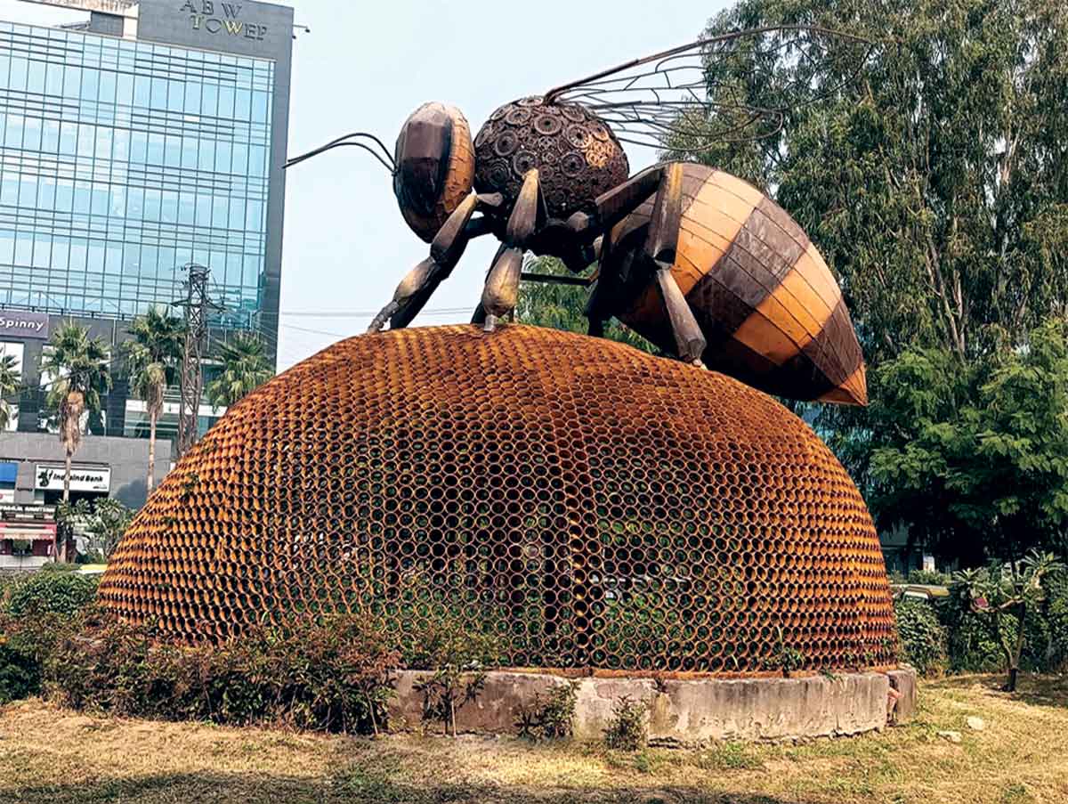 ਪਾਰਕ ਤੋਂ ਇਲਾਵਾ ਸ਼ਹਿਰ ਦੇ ਚੌਂਕ-ਚੌਰਾਹਿਆਂ ’ਤੇ ਵੀ ਮੂੰਹ ਬੋਲਦੀਆਂ ਕਲਾਕ੍ਰਿਤੀਆਂ ਬਣਾਈਆਂ ਗਈਆਂ ਹਨ ਇਨ੍ਹਾਂ ਨਾਲ ਸ਼ਹਿਰ ਦੀ ਸੁੰਦਰਤਾ ’ਚ ਚਾਰ ਚੰਨ ਲੱਗੇ ਹਨ ਇਫਕੋ ਬੈਂਕ ’ਤੇ ਵਿਸ਼ਾਲ ਹਰਿਆਣਵੀ ਤਾਊ ਦੀ ਲੋਹੇ ਦੇ ਕਬਾੜ ਨਾਲ ਬਣੀ ਮੂਰਤੀ ਹੈ ਤਾਂ ਇਸ ਤੋਂ ਥੋੜ੍ਹਾ ਅੱਗੇ ਹੀ ਲੋਹੇ ਦੇ ਕਬਾੜ ਨਾਲ ਮਧੂਮੱਖੀ ਦਾ ਛੱਤਾ ਬਣਾਇਆ ਗਿਆ ਹੈ ਐੱਮਜੀ ਰੋਡ ਗੁਰੂਗ੍ਰਾਮ-ਦਿੱਲੀ ਬਾਰਡਰ ’ਤੇ ਬਾਇਓਡਾਇਵਰਸਿਟੀ ਪਾਰਕ ਦੇ ਮੇਨ ਗੇਟ ’ਤੇ ਵੱਡਾ ਬਾਜ ਬਣਾਇਆ ਗਿਆ ਹੈ ਫਰੀਦਾਬਾਦ ਰੋਡ ’ਤੇ ਚੌਰਾਹੇ ’ਤੇ ਹੱਥ ’ਤੇ ਬੈਠੀ ਤਿੱਤਲੀ ਬਣਾ ਕੇ ਅਤੇ ਇੱਕ ਪਾਸੇ ਵੱਡੀ ਚਿੜੀ ਬਣਾ ਕੇ ਤਿੱਤਲੀ ਅਤੇ ਚਿੜੀਆਂ ਨੂੰ ਬਚਾਉਣ ਦਾ ਸੁਨੇਹਾ ਦਿੱਤਾ ਗਿਆ ਹੈ
